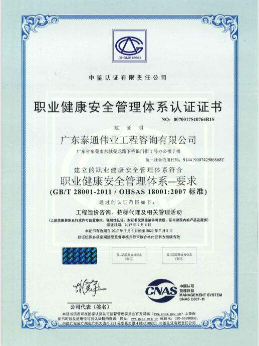 > 资质荣誉 > 职业健康安全管理体系认证证书(中文版)